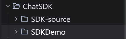 如果网络环境受限,可将源码下载为Zip包上传至服务器并解压。如下图所示,在服务器中创建 ChatSDK 文件夹,解压后的源码位于 SDK-source 目录中。