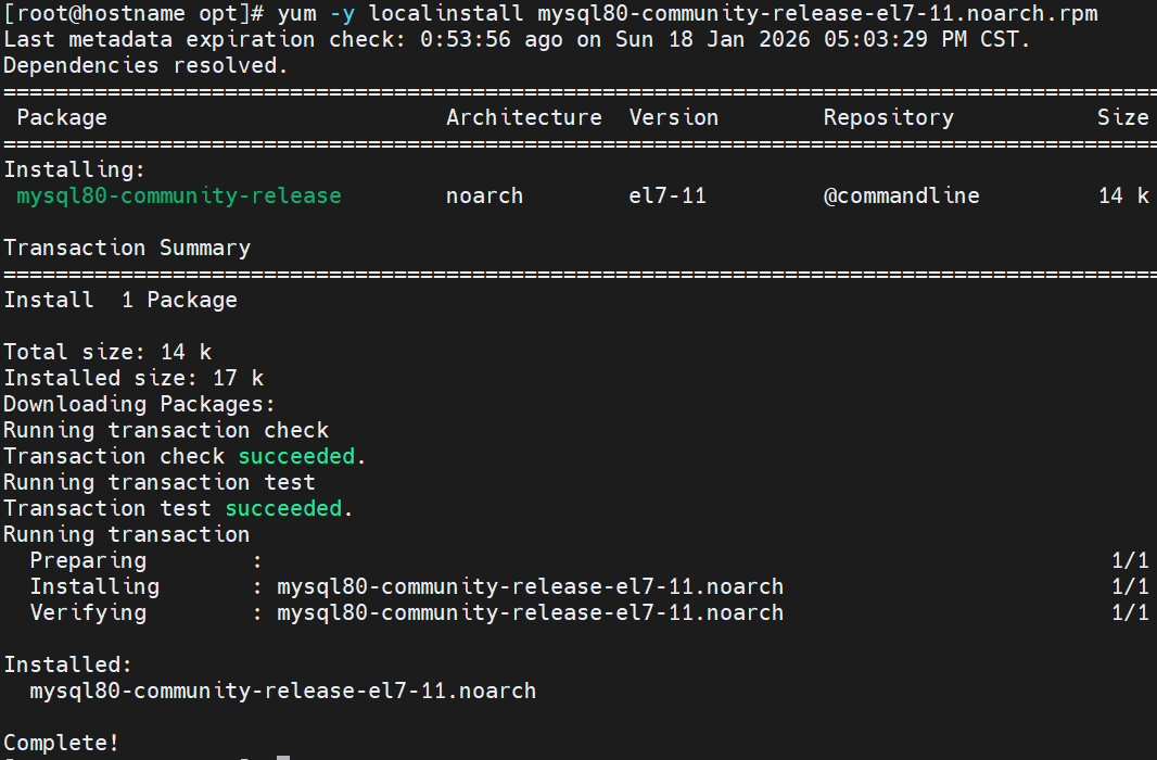 yum -y localinstall mysql80-community-release-el7-11.noarch.rpm