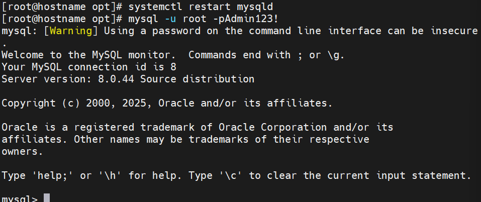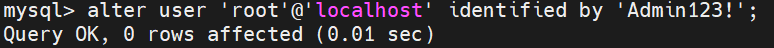alter user 'root'@'localhost' identified by 'Admin123!'; # 密码自定义