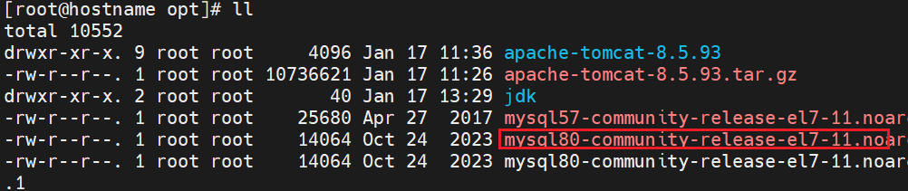 2.5.1 切换到opt目录,下载mysql的rpm包