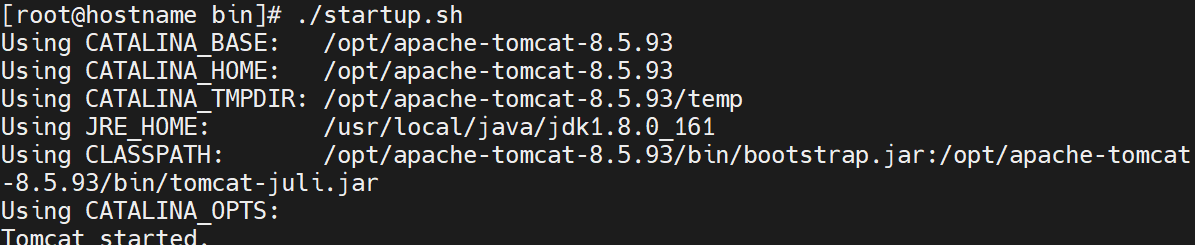 进入解压目录bin,使用/.startup.sh启动tomcat