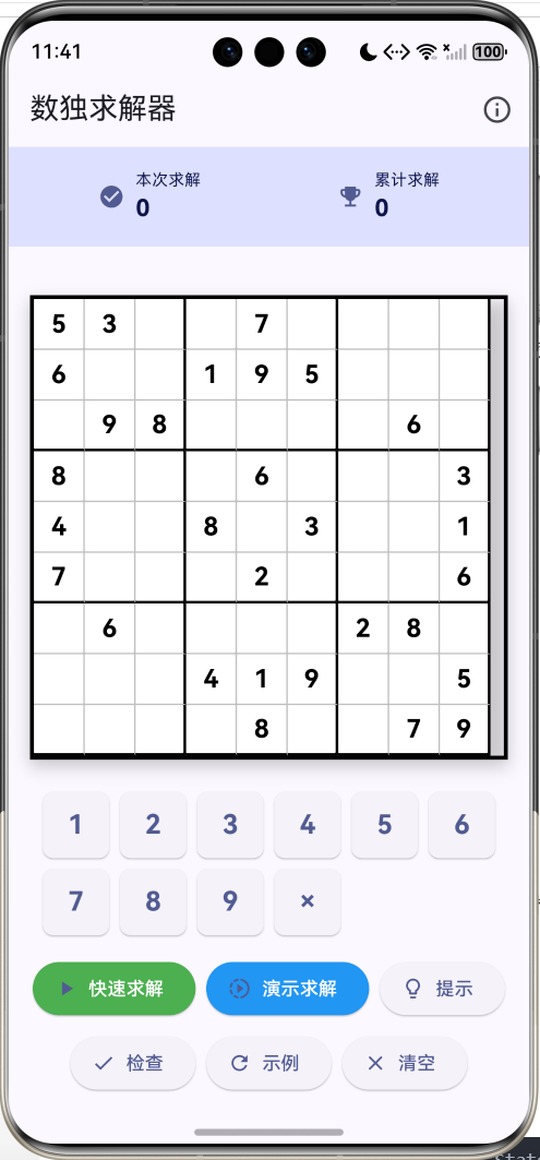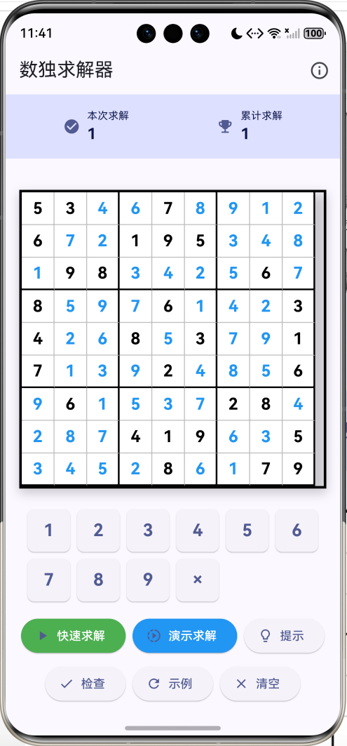 - 示例题目:内置经典数独题目