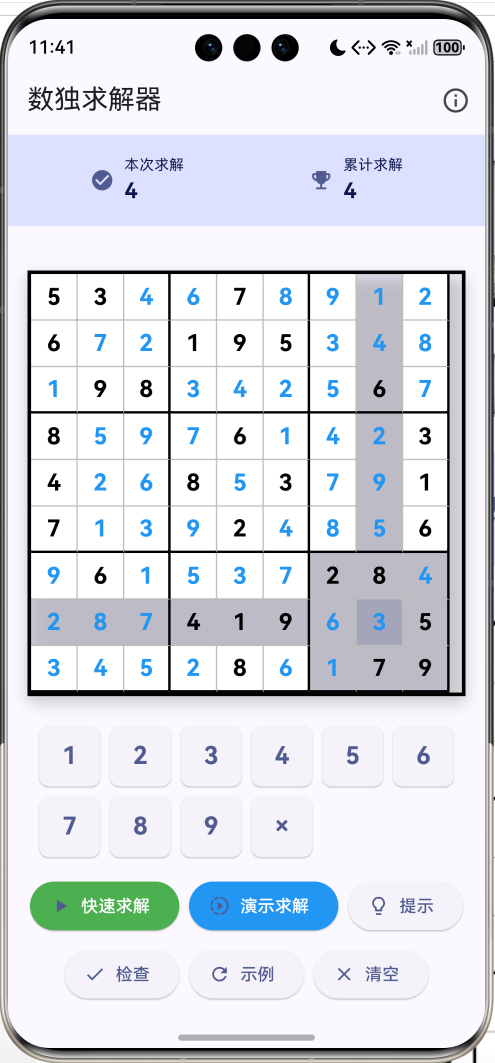 - 智能提示:显示当前格可填数字