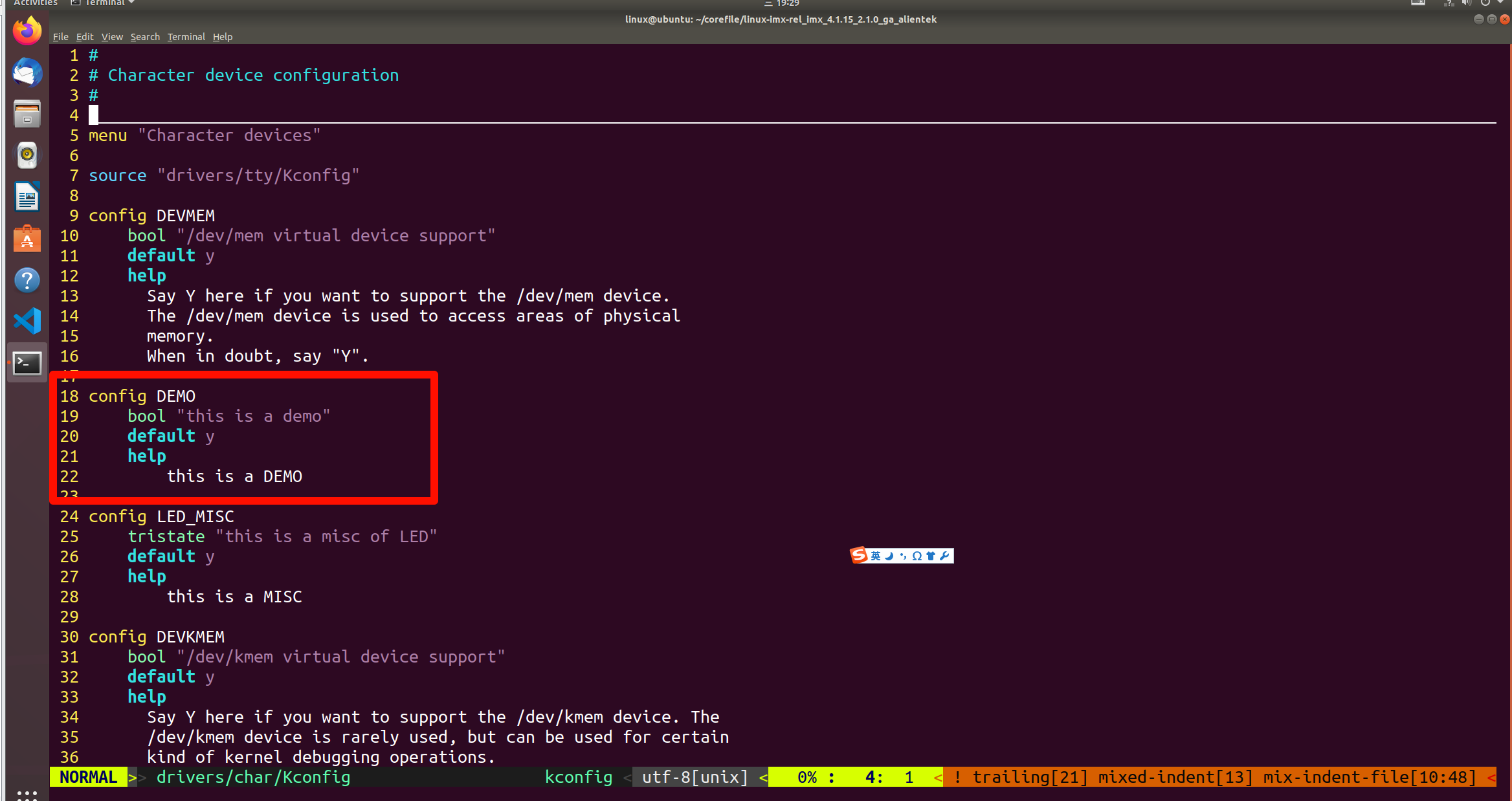 - 修改Kconfig,新增配置项,与静态编译不同,动态编译配置类型为tristate,default配置y默认开启、n默认关闭、m 默认为模块