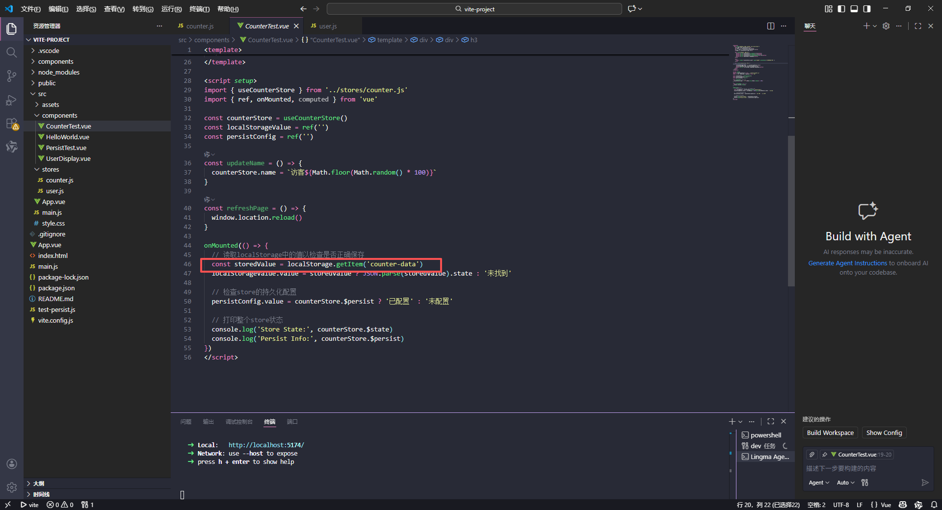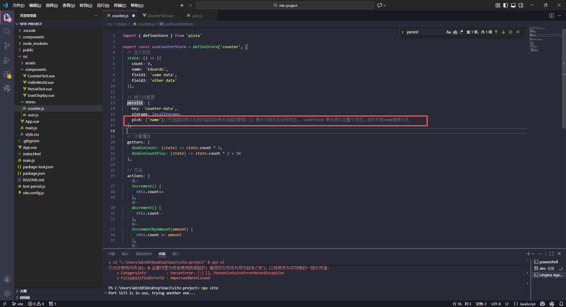 (1)注意:使用pinia仓库的地方要配置久化,(默认是sessionStorage关闭页签数据就没有了)
