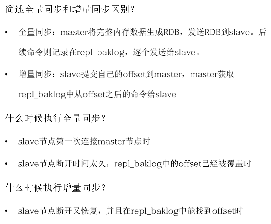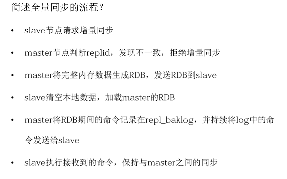 🖊因此slave做数据同步,必须向master声明自己的replication id 和offset,master才可以判断到底需要同步哪些数据(replication id不一样👉全量同步;replication id一样👉增量同步)