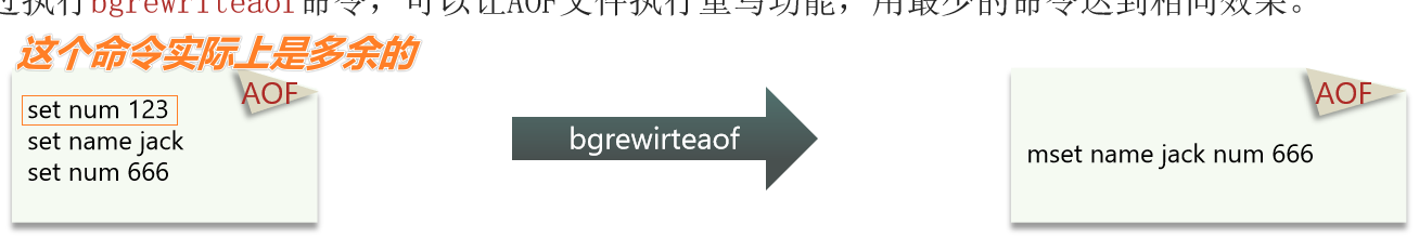 bgrewriteaof命令,可以让AOF文件执行重写功能,用最少的命令达到相同效果。