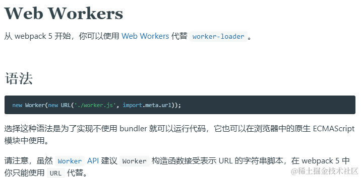其实我们查看 webpack5 (vue-cli5内置webpack5)官方文档就可以看到推荐使用引入方式代替了 worker-loader