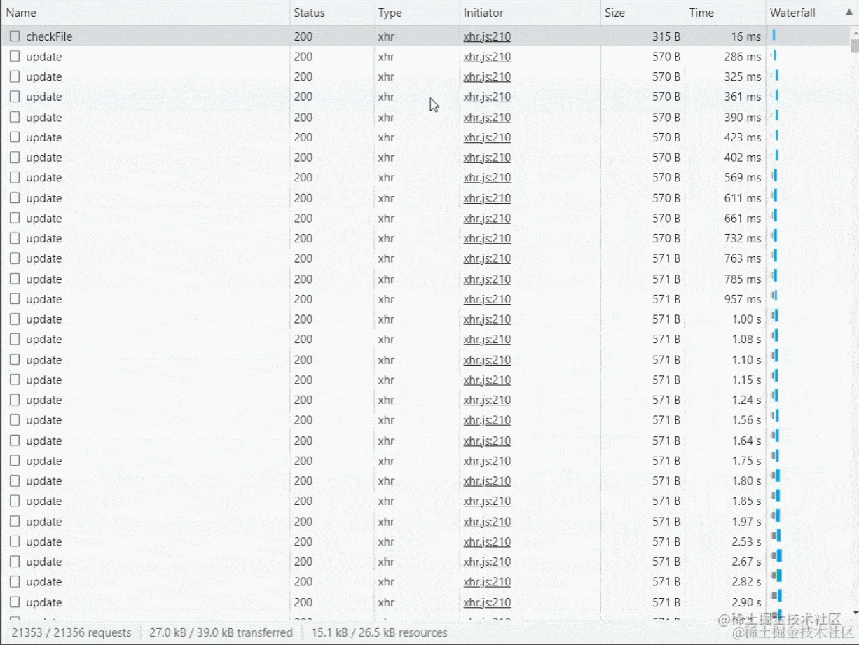 在上面代码中,我们通过checkFile接口去获取该文件是否需要再次上传,以及拿到已上传切片列表,如果不需要二次上传,则直接让其显示上传完成并设置上传状态,如果是已上传部分切片,则需要过滤掉已经上传过的切片,同时要注意,可能存在已经上传完所有切片但未合并的情况,这时候就得调一次合并接口即可。同时要注意处理切片数量,因为这在判断是否已经上传完全部切片的时候用到。