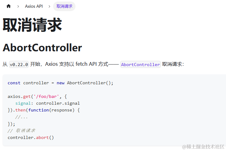 // 那传过来的这个方法就会接收到一个参数(就是取消函数() => controller.abort())