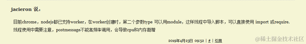 其实 worker 在内部不仅仅可以使用importScripts()引入脚本,也可以使用ES6的引入方式
