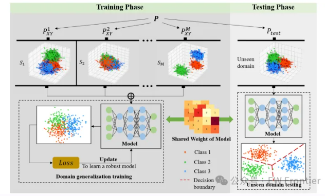 为解决这一挑战,领域泛化(DG)应运而生。与DA不同,DG无需训练时获取目标域数据,旨在构建能直接泛化到未见过领域的模型,这对于SEI至关重要------收集所有潜在工作环境的标记数据既不现实也不可行。现有DG方法多聚焦于信号采集和预处理,但存在复杂度高、计算资源消耗大等问题。同时,DG研究大多集中在图像识别任务,针对SEI的DG方法相对匮乏,因此亟需开发专门适用于SEI的DG技术。