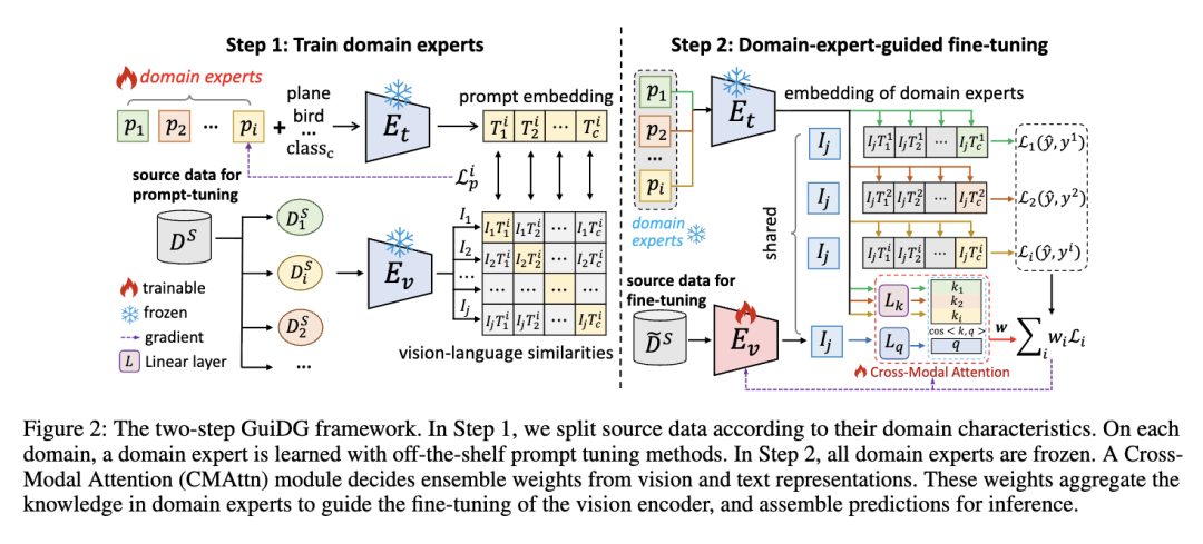 GuiDG框架的核心思路很简单:与其让一个模型"单打独斗",不如组建一支"专业团队"------让不同专家各司其职,再用智能模块整合意见。整个过程分为两步: