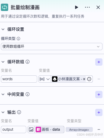 3.批量绘制漫画。 因为一次要生成多张漫画,就要用到这个,当然也可以使用循环组件。