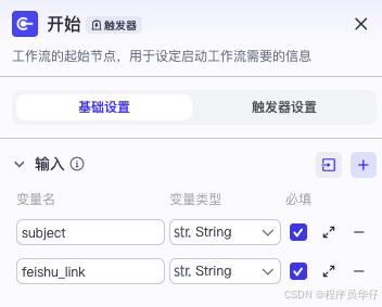 输入参数两个:标题和飞书链接地址