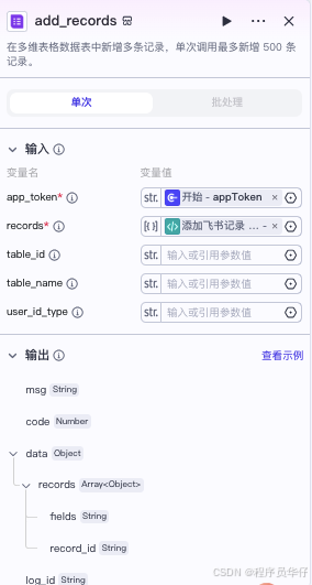 添加飞书记录 代码