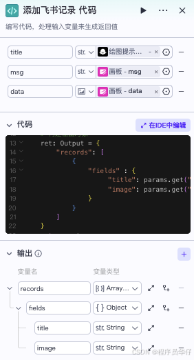 7.添加飞书记录。 对图片和文字进行格式化,以满足飞书上传要求。