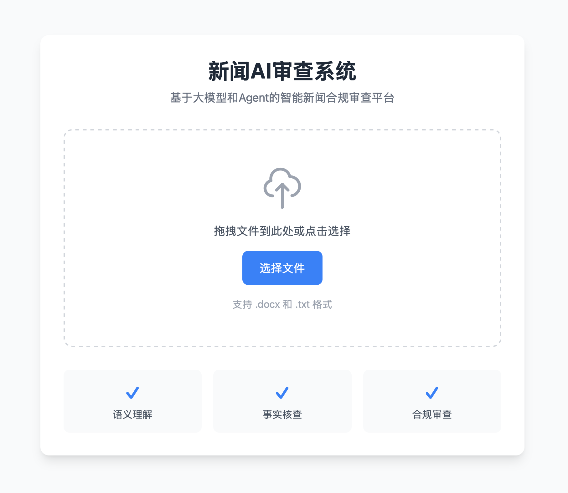 郑重声明:本系统只是以新闻AI审查场景为例来演示相关技术,相关数据都是模拟数据,并不能实际进行新闻的审查,不能直接作为审查系统使用!如有使用责任自负!