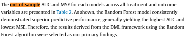 今天在一篇因果推断SCI论文中,看到一个词out of sample,翻译为各模型在所有处理和结局变量下的样本外 AUC 和 MSE。这是何意?"in sample test"与"out of sample"有何区别?