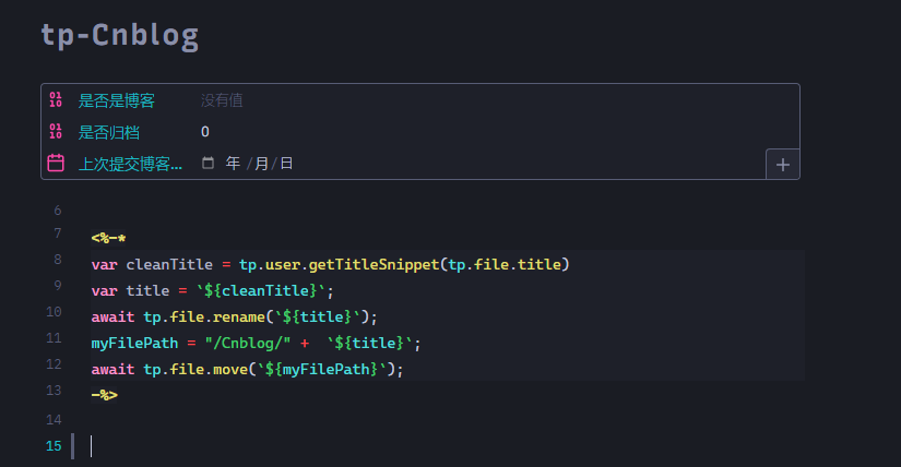 开头是元数据。正文内容就是把这个新创建的笔记存放到/Cnblog/专属的类型文件夹下面便于区分管理。