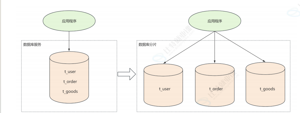 数据库也可以进行分片,把一份数据搞到多个服务器的MySQL上进行压力分摊,数据分片分为垂直分片,水平分片