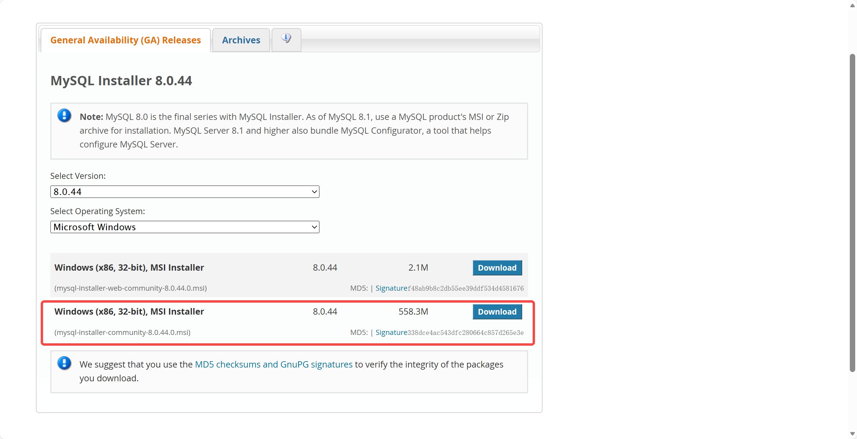 - mysql-installer-web-community:体积小,安装时需要联网下载