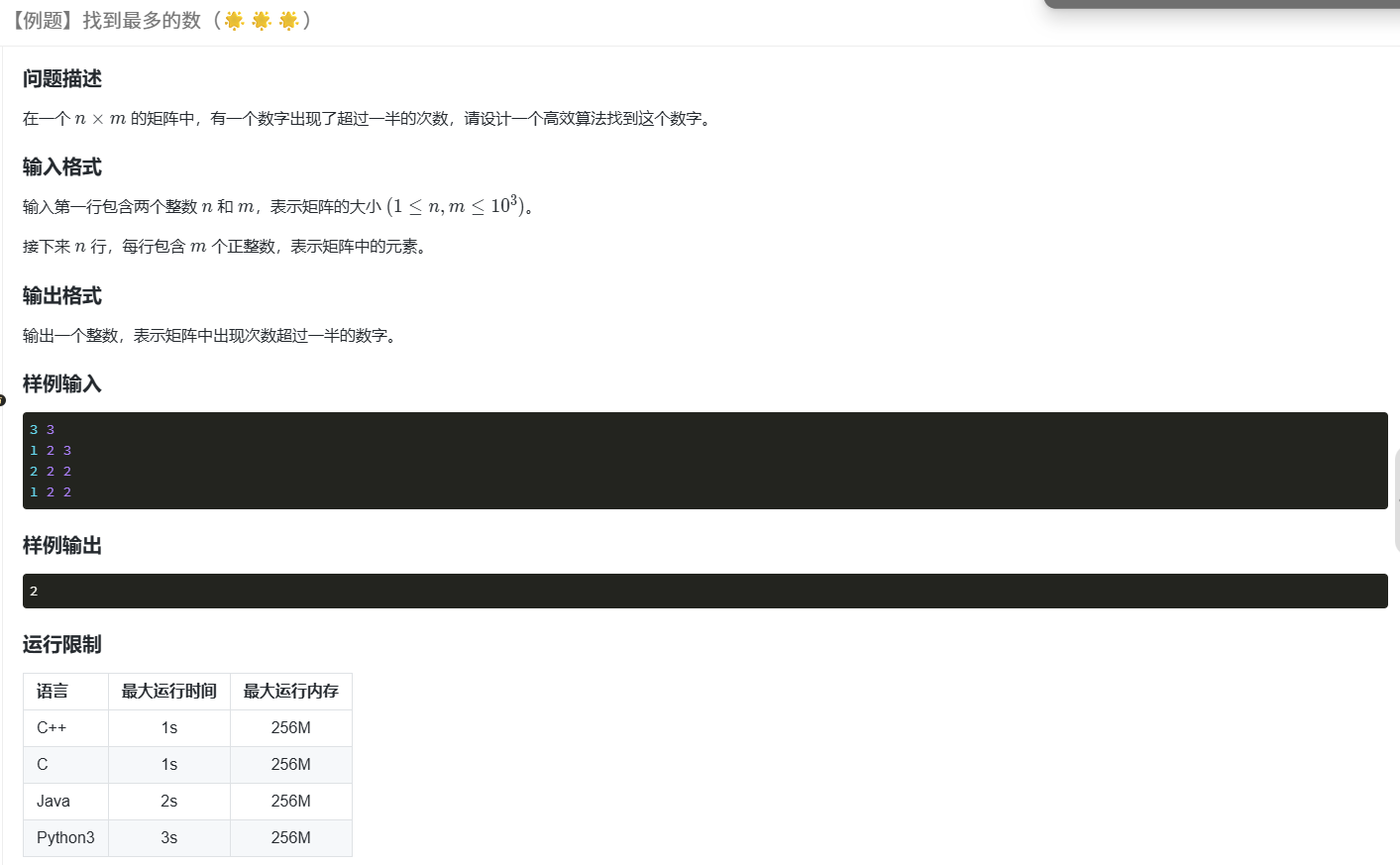 现在给你一个长度为n的数组,有一个数出现次数最多,请你设计一个算法找出这个数。