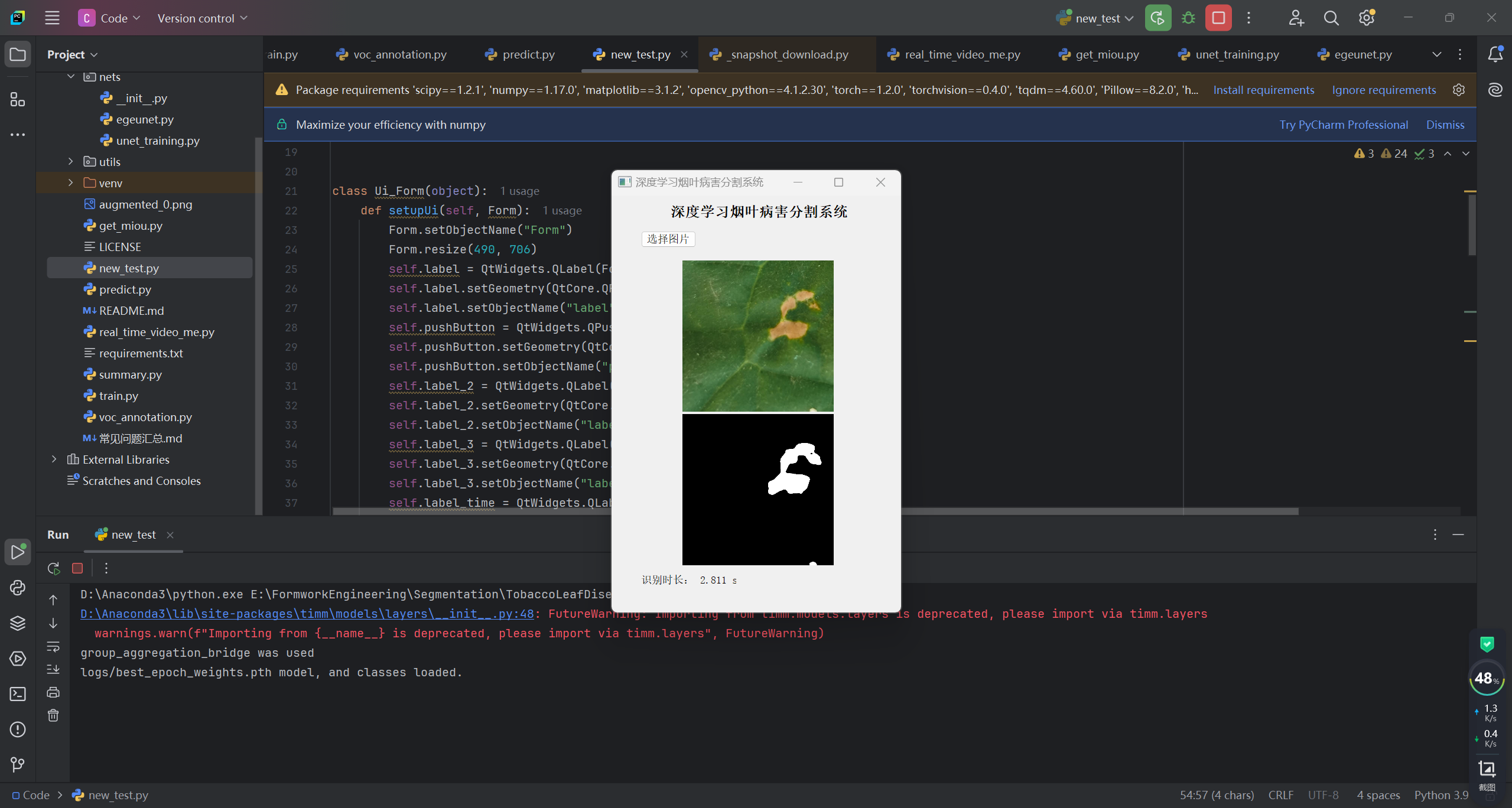 烟叶病害分割数据,可直接应用到一些常用深度学习分割算法中,比如FCN、Unet、SegNet、DeepLabV1、DeepLabV2、DeepLabV3、DeepLabV3+、PSPNet、RefineNet、HRnet、Mask R-CNN、Segformer、DUCK-Net模型等