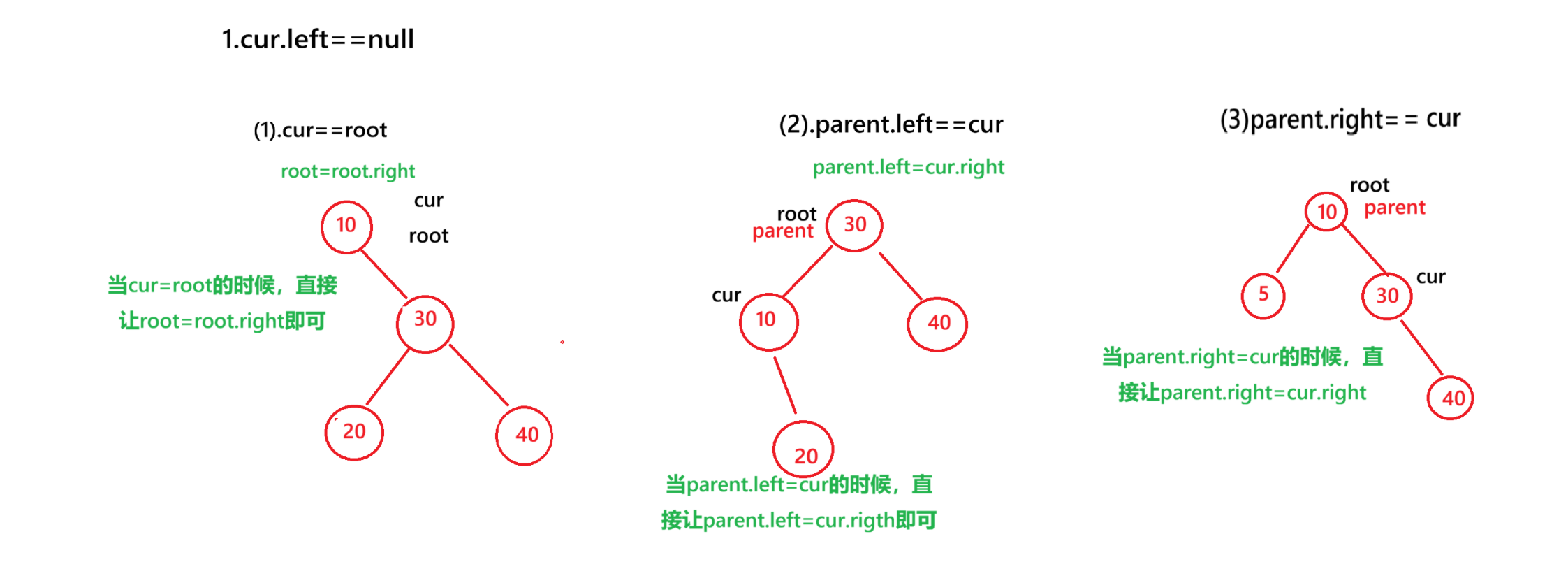 直接让parent.left=cur.right