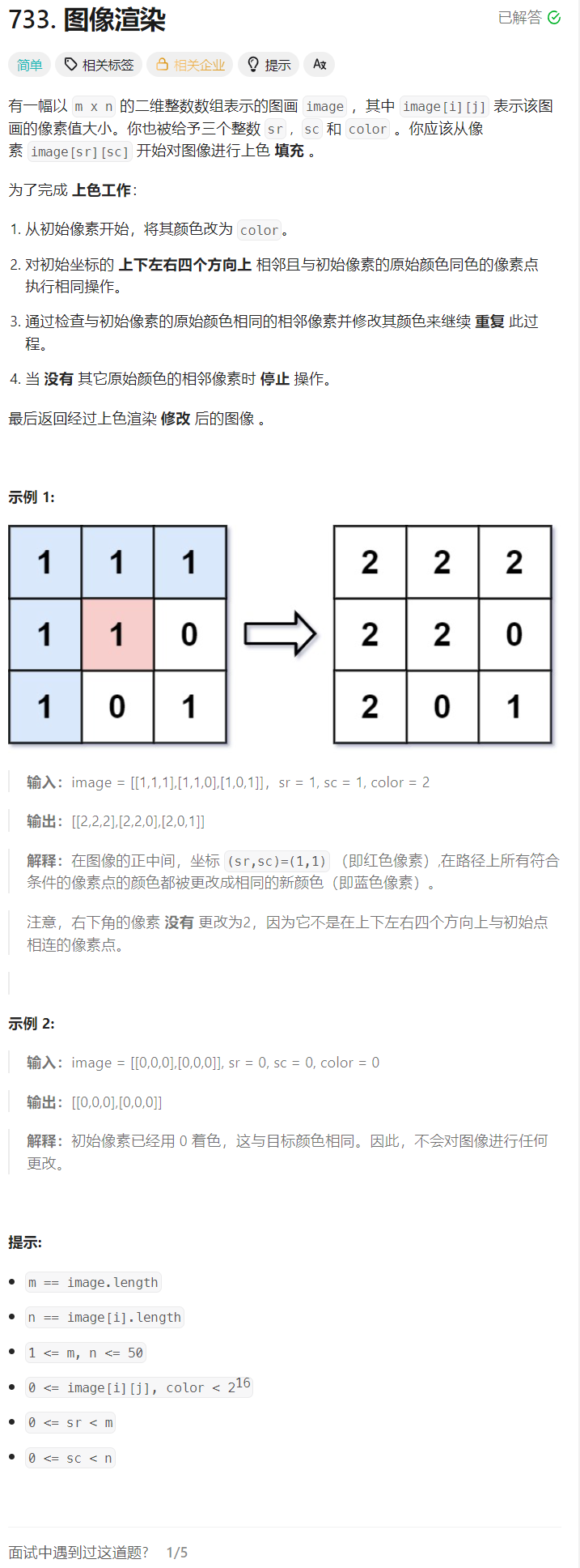 思路:层序遍历(BFS)解决 FloodFill 题