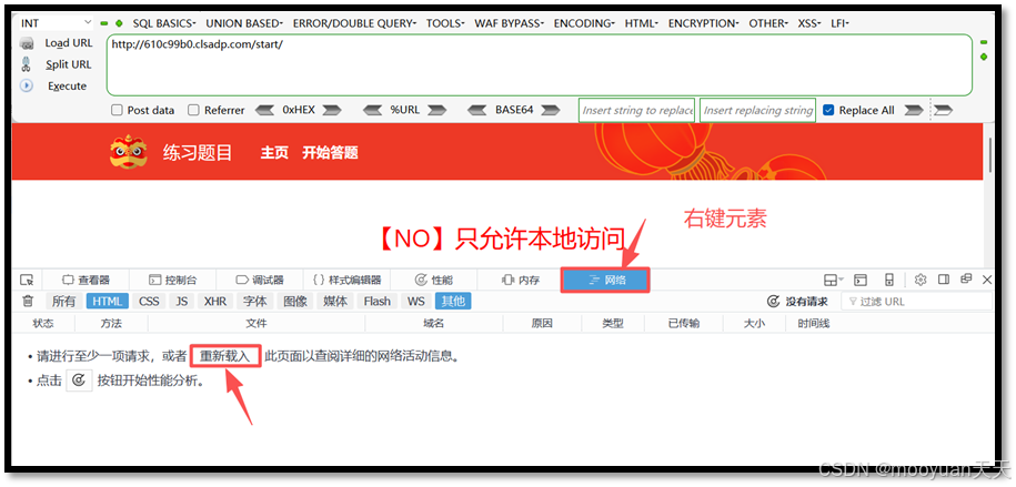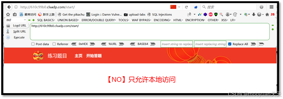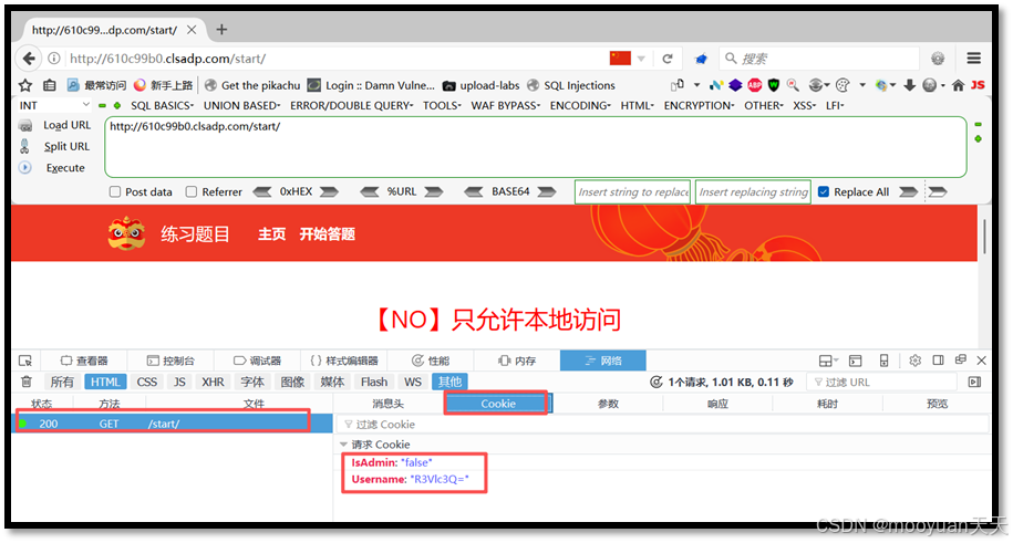 点击发送后,页面提示"No,只允许本地访问",这说明我们还需要加入X-Forwarded-For:127.0.0.1字段,代表本地ip进行访问。