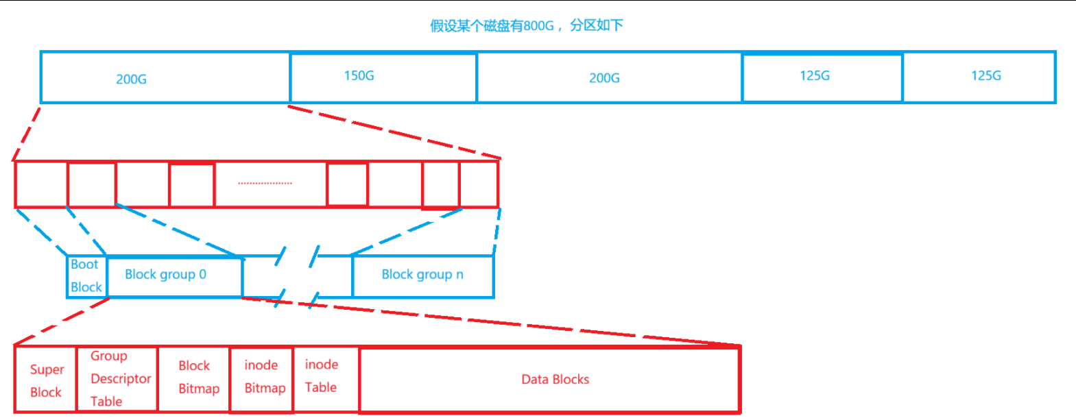 块组划分 :它将整个分区划分为一系列大小相等的块组 ,每个块组内部自包含关键的元数据:超级块、组描述符表、块位图与inode位图、inode表、数据块