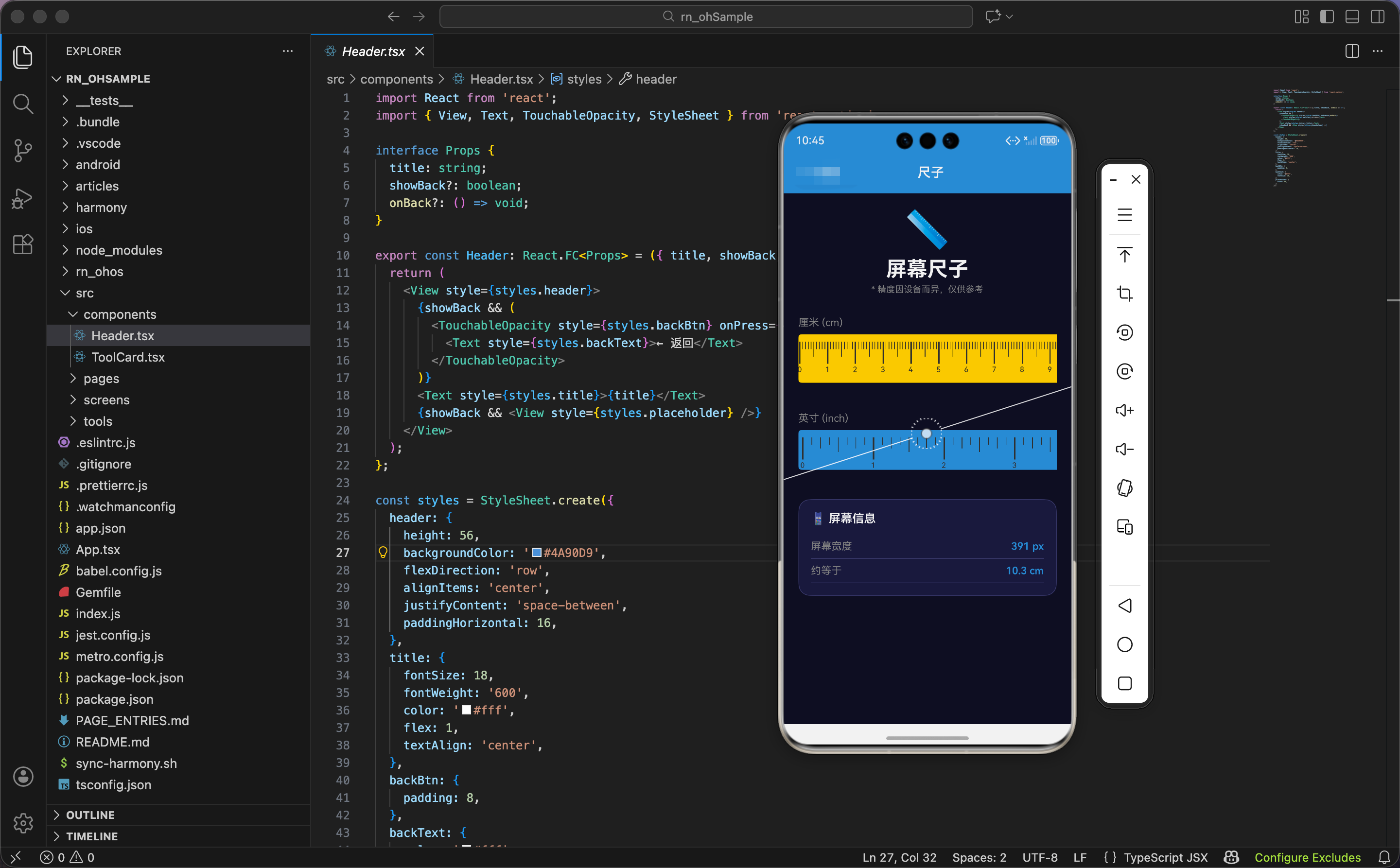 这一篇实现一个「屏幕尺子」小工具:在手机屏幕上绘制 cm / inch 两条刻度尺,并展示当前设备屏幕宽度(px)与"换算后的大致厘米数"。
