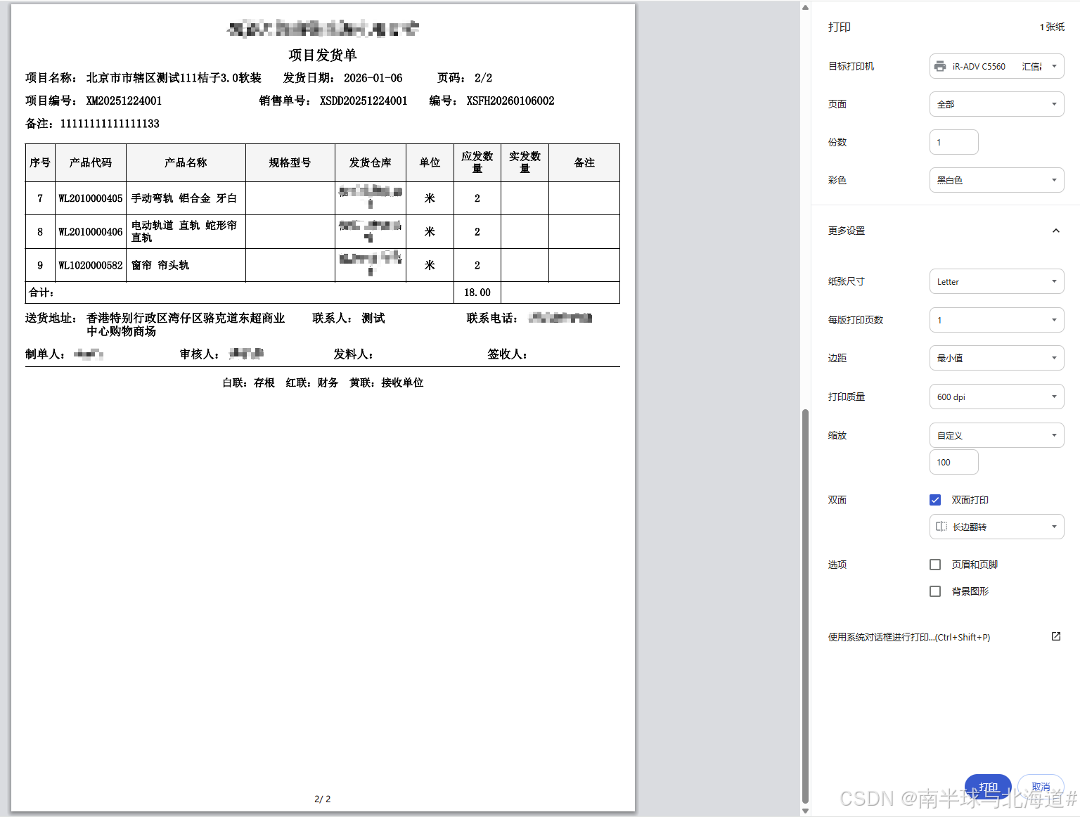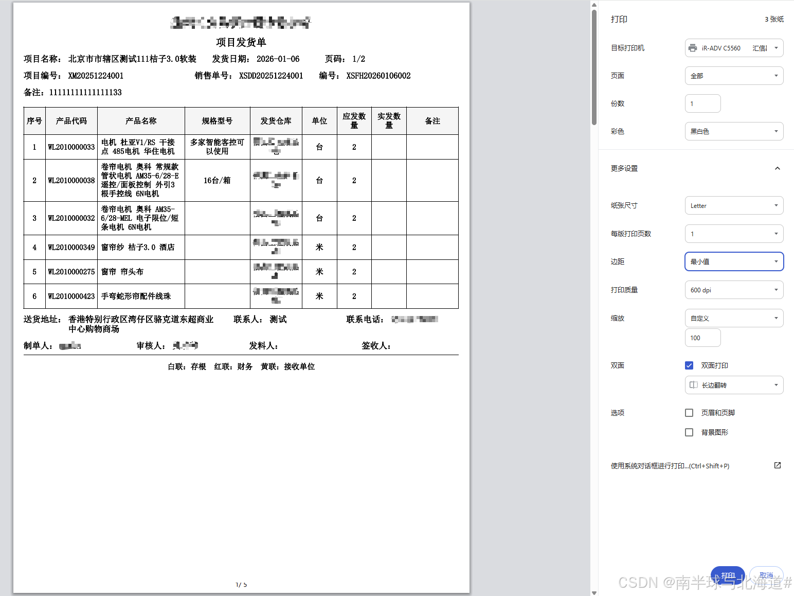 3、适配三联纸:保留纸张尺寸,优化边距和字体适配针式打印