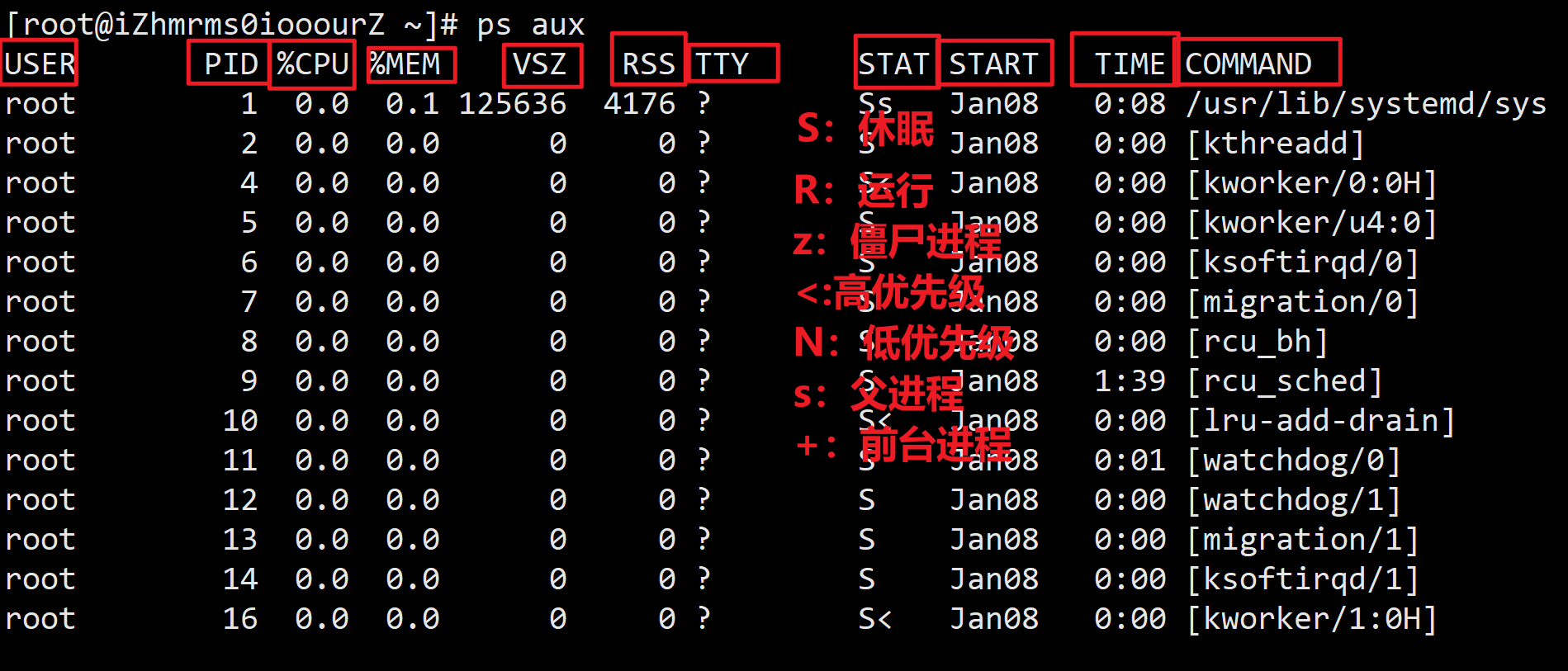 VSZ:进程占用虚拟内存的大小(单位KB)
