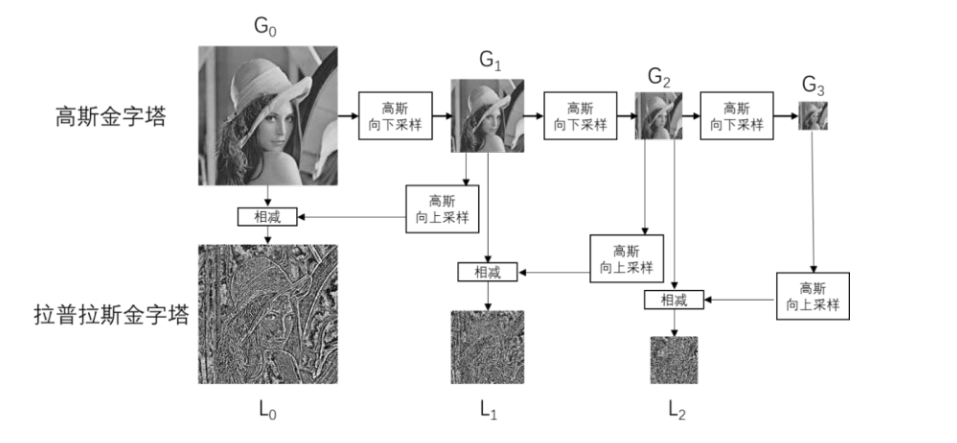 前面我们已经介绍过,一幅图像在经过向下采样后,再对其进行向上采样,是无法恢复为原始状态的。为了在向上采样时能够恢复具有较高分辨率的原始图像,就要获取在采样过程中所丢失的信息,这些丢失的信息就构成了拉普拉斯金字塔。