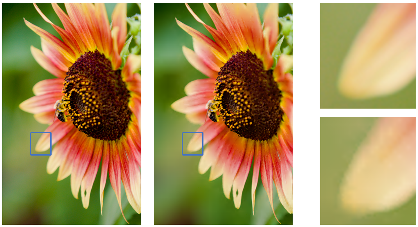 压缩前后的对比;右侧是细节对比