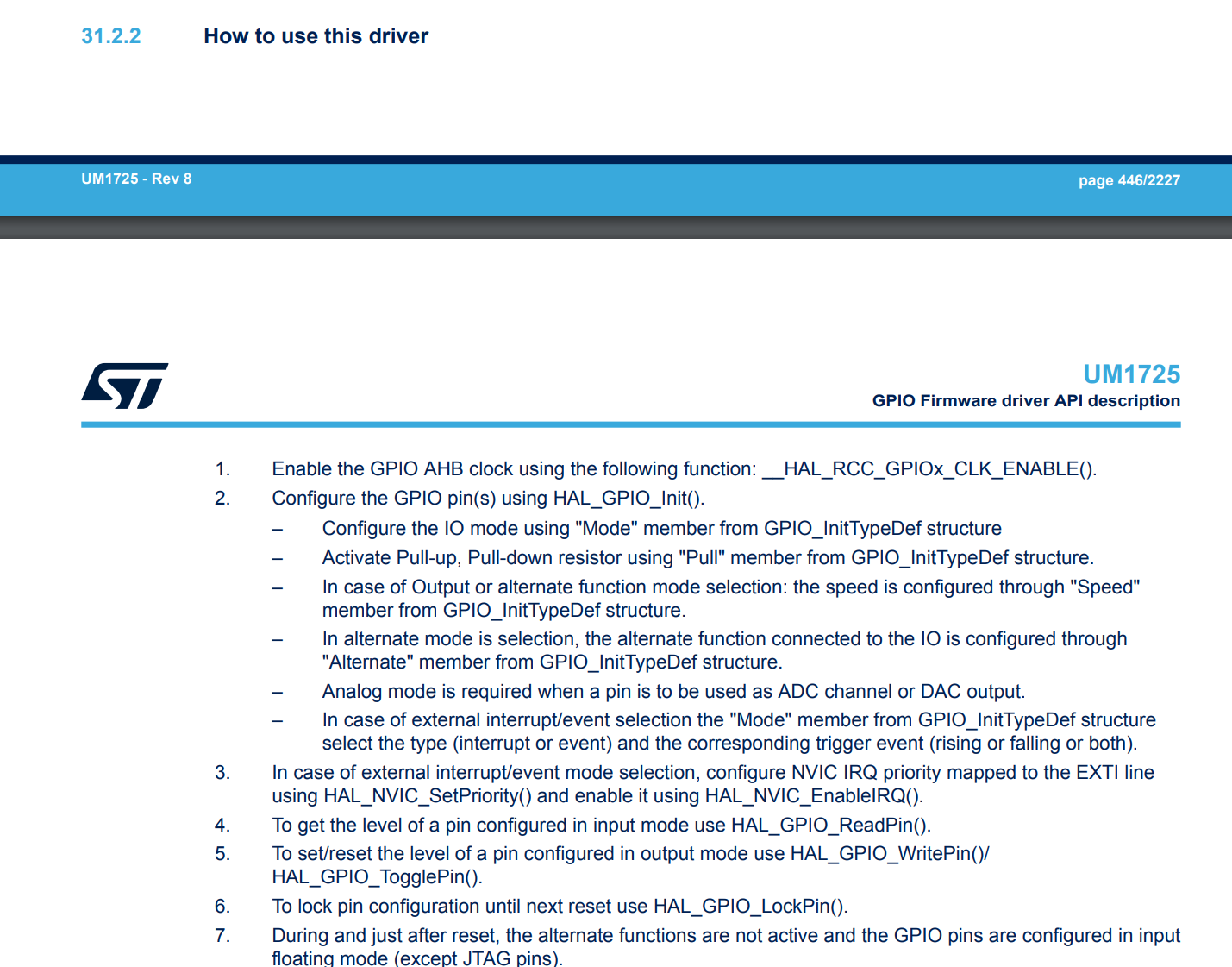 (#) To get the level of a pin configured in input mode use HAL_GPIO_ReadPin().