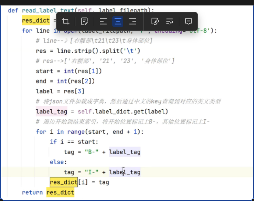 先获取实体的英文名,然后用B-英文名或者I-英文名拼接,,得到每实体里面每个字的标签.