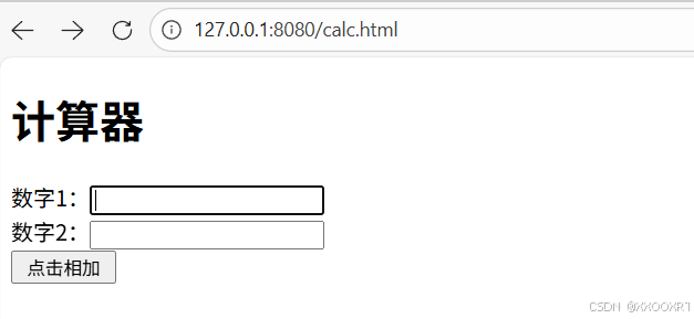 需求:输入两个整数,点击"点击相加"按钮,显示计算结果