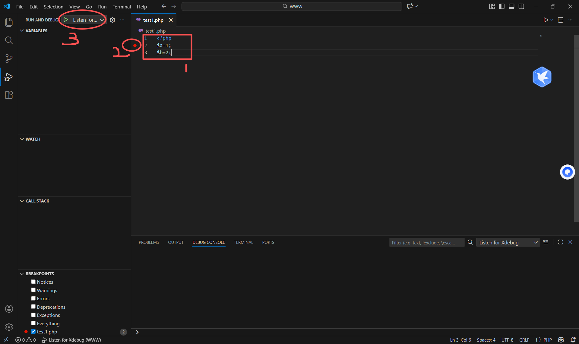 应用层调试(PHP 业务代码) :Xdebug + VSCode(调试 .php 文件)