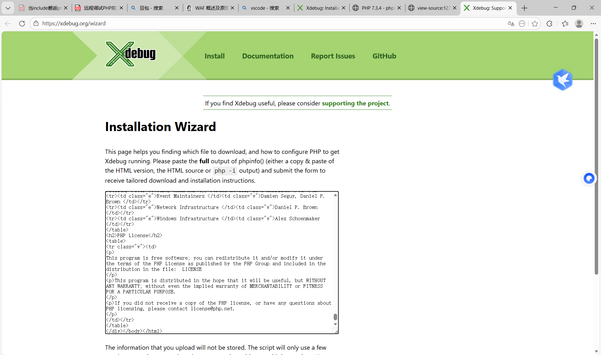 phpinfo()输出的源代码 - 点击 "分析",按指引安装并配置