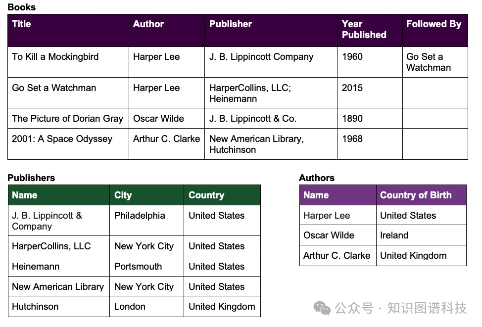 - 《杀死一只知更鸟》 → 有作者 → 哈珀·李(To Kill a Mockingbird → has author → Harper Lee)