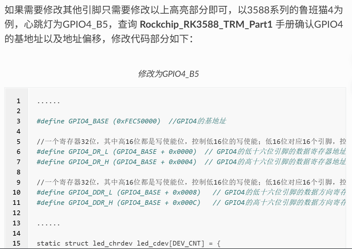 我是参考野火官方进行编程的,里面用的是rk3568,这边就是迁移记录一下,下面的图片是鲁班猫给出的修改代码,可以自行去看。 我这边走一遍3588的流程,自己去找一下手册 然后迁移一下。