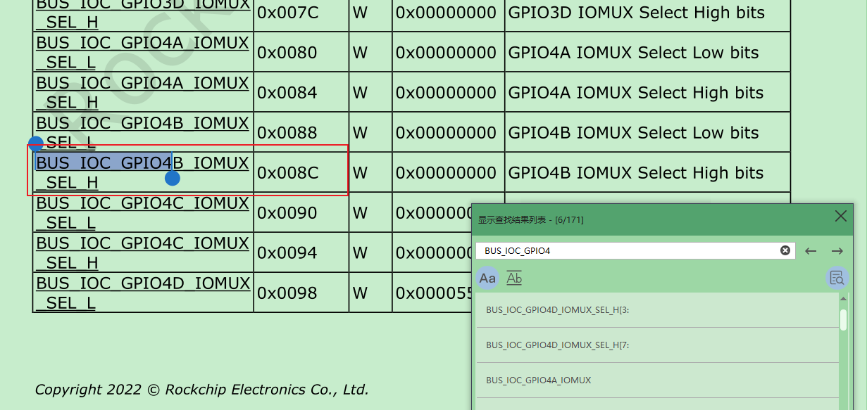 查询 Rockchip_RK3588_TRM_Part1 手册,BUS_IOC_GPIO4B_IOMUX_H寄存器,如下图所示: