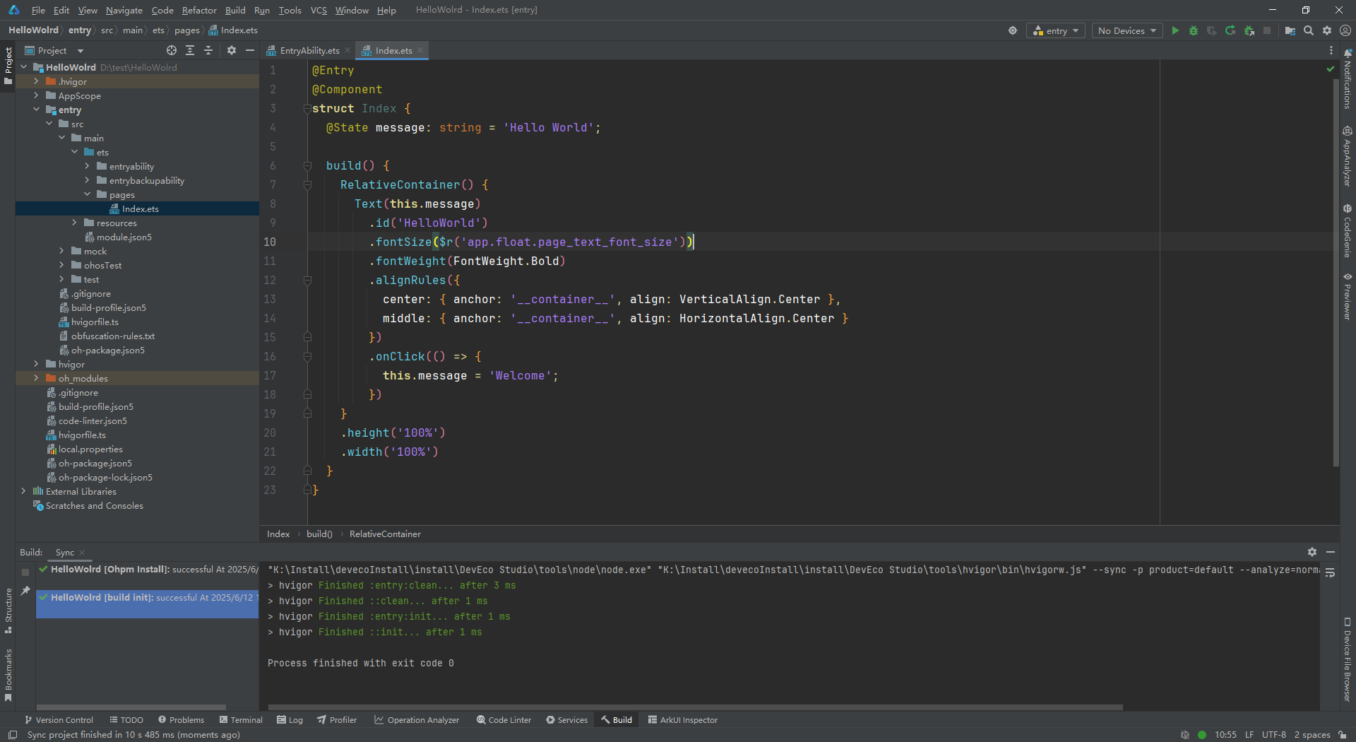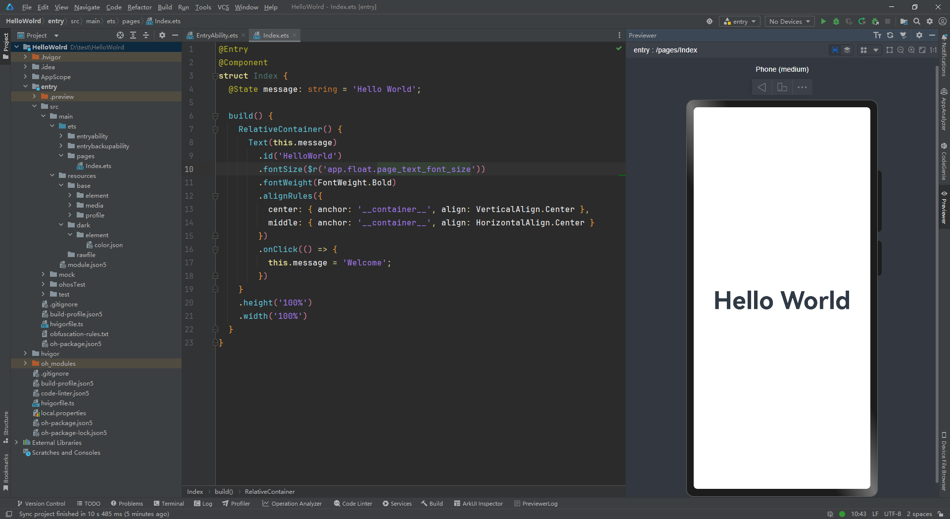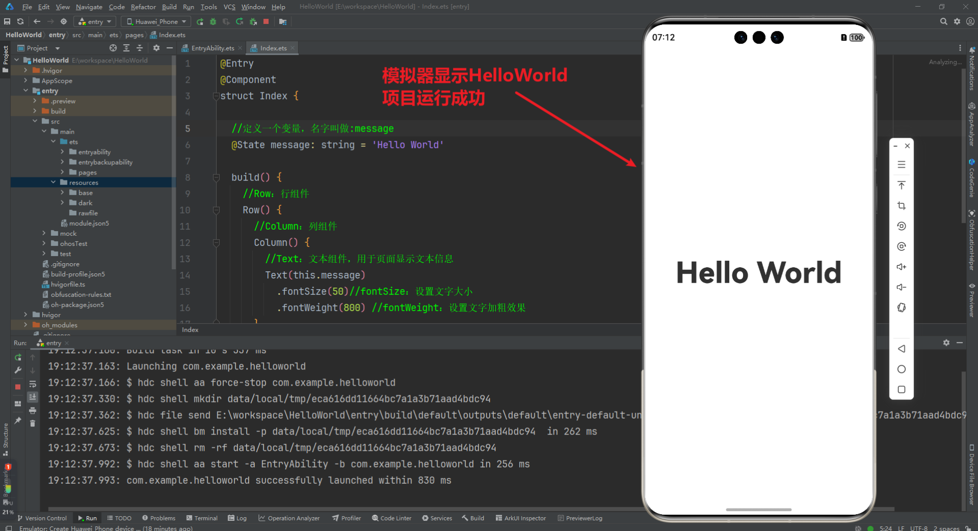 至此一个简易的HarmonyOS工程就建完并运行成功了