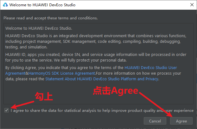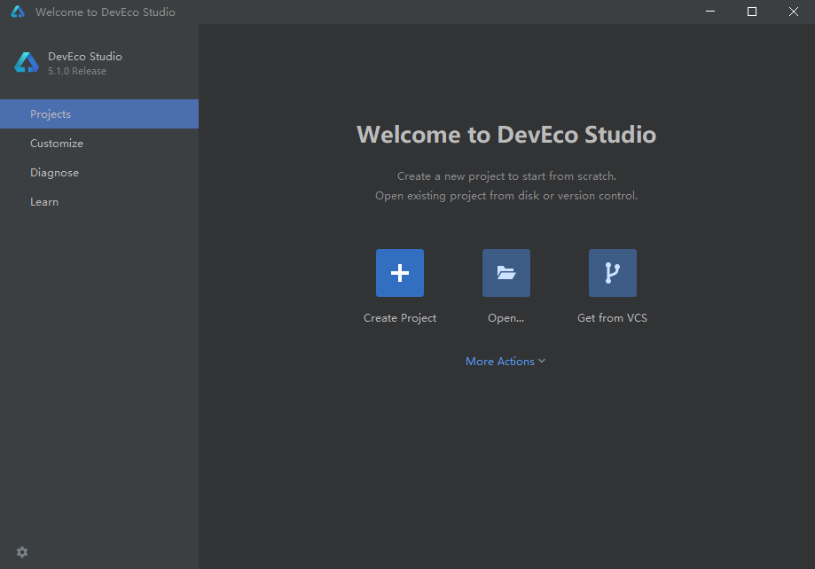 双击桌面【DevEco Studio】的快捷图标启动软件: