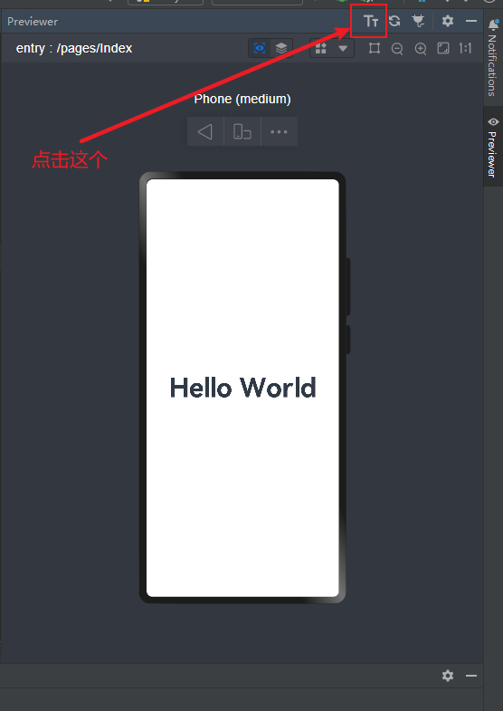 非常简单,点击开发工具最右侧的【Previewer】选项即可,如下: