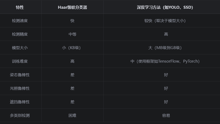 八、Haar级联分类器与深度学习方法对比