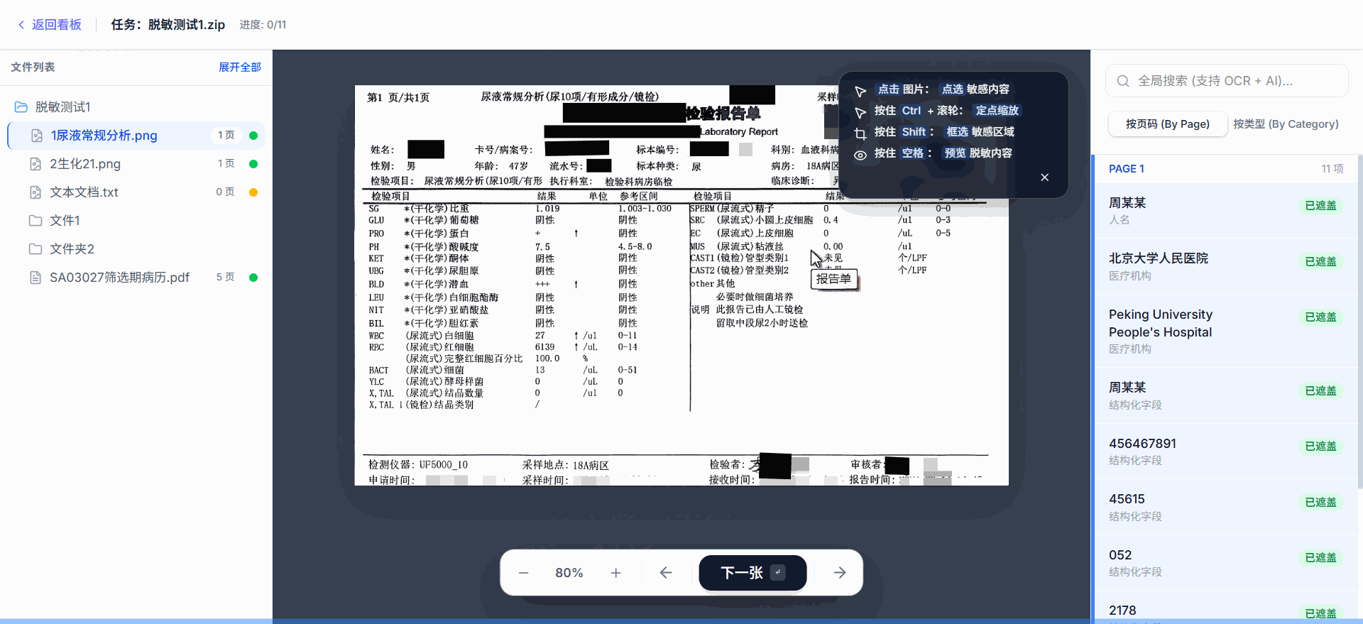 - 【鼠标双击-未脱敏】将该区域进行快速脱敏